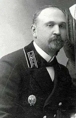 The court councilor's rank corresponded to the rank of lieutenant colonel in the army, the sergeant in the Cossacks and captain of the 2nd rank. The official address for a court councilor was "Your Excellency".[1] The signs of the distinction of this rank were double-luminous buttonholes or epaulets with three stars.