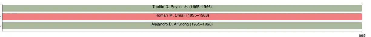 | 5 | Alejandro Alfurong | AJ | June 1965 | Macapagal | Luciano | T. Reyes | January 1966 |
