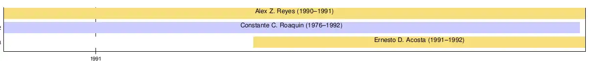 | 7 | Ramon Avanceña | AJ | May 1966 | Marcos, Sr. | Umali | Umali | January 1976 |