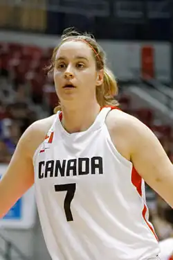 She was invited to join the national team, to play in the 2013 FIBA Americas Championship for Women, held in Xalapa, Mexico from 21 to 28 September 2013. She averaged 3.2 points per game, and helped the Canadian National team to a second place, silver medal finish. Canada faced Cuba in a preliminary round and won 53–40, but in the championship game, Cuba prevailed 79–71.[3][4]