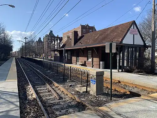 The station opened on December 17, 1913, with the initiation of rail service on what is now Shaker Boulevard.[2]: 12 The rail line was in the nature of a streetcar line, and it ran from the existing tracks on Fairmount Boulevard, south on Coventry Road, and then east along the newly laid-out boulevard, initially an extension of Coventry. At that time, there was no Shaker Boulevard west of Coventry, and Coventry did not extend south beyond Shaker. The line was built by Cleveland Interurban Railroad (CIRR) and operated by the Cleveland Railway until 1930. The railway also operated the streetcar line on Fairmount Boulevard. Trains ran from the terminus at Fontenay Road, down Coventry Road, and then to downtown Cleveland using the Cleveland Railway tracks from Fairmount Boulevard.