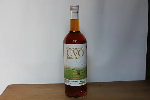Covid-Organics (CVO) is an Artemisia-based drink that Andry Rajoelina, president of Madagascar, claims can prevent and cure Coronavirus disease 2019 (COVID-19). The drink is produced from a species under the Artemisia genus[1][2][3] from which artemisinin is extracted for malaria treatment.[4][5] No publicly available clinical trial data supports the safety or efficacy of this drink.