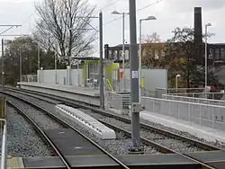 Freehold Metrolink station, on Cowhill's common border with Werneth on Block Lane, provides direct tram links to Manchester and beyond and to Rochdale Railway Station and town centre. The station was opened in 2012 and was one of several new stations opened along the Oldham and Rochdale Line. Alternative names for the station including Cowhill and Block Lane were considered but rejected by the local council in favour of Freehold.[27]
