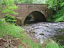 ![]() Cowie Water, looking downstream at the A957 road bridge | |