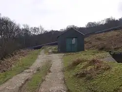 The line for most of its length runs to the south of the water pipeline. However, it finished at the northern end of the dam, which means that at some point it must have passed below it, and this is evident between Siglen and the dam, where the pipe has a 'hump' to afford the necessary clearance.[1]