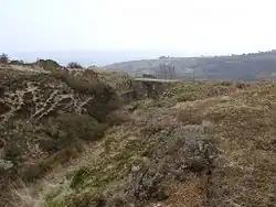 In the other direction, between Siglen and Coedty, the formation has been widened to form an access track (for farm and pipeline vehicle access) and on these widened sections the rail has been recovered, leaving only minimal evidence of the line. Today the whole length of the tramway can easily be walked, particularly between Siglen and the top of the Dolgarrog inclines. It will be seen that the formation was of better construction towards Coedty, where there is an embankment and some small cuttings.[1]