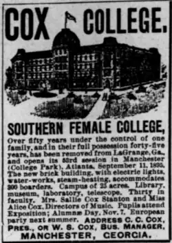 Cox College was a private women's college located in College Park, Georgia that operated from 1842 to 1934.