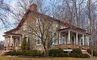 Cox Farmhouse is a historic home located at Rhinebeck, Dutchess County, New York. It was built in the mid- to late-18th century and expanded and remodeled in 1843. It is a 1+1⁄2-story, L-shaped, stone-and-brick dwelling in the Greek Revival style. It is five bays wide and two bays deep and is topped by a gable roof. It features an elaborate, ornamented entrance.[2]