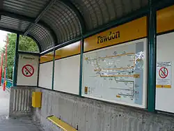 There used to be a railway station called Coxlodge station, which was in use between 1905 and 1929, on the Ponteland and Darras Hall Branch of the North Eastern Railway.[14] The architect's plans of 1903 indicate that Coxlodge station was actually to be known as Fawdon, which became the Metro station name decades later. By 1973 the platform and buildings had gone, but the signal box remained until some time later; itself eventually being demolished. The site of this station is now occupied by Fawdon Metro station, which opened in 1981.[15]