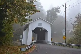 Slightly upstream of Crow, the creek flows under Coyote Creek Bridge. The covered bridge, on the National Register of Historic Places since 1979,[4] carries Battle Creek Road over the water.[5]