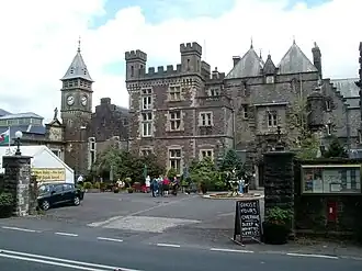 Craig-y-nos Castle (meaning:Rock of the Night), is a Scots baronial-style country house near Glyntawe in Powys, Wales. Built on parkland beside the River Tawe in the upper Swansea Valley, it is located on the southeastern edge of the Black Mountain. The castle, formerly owned by opera singer Adelina Patti, is now a hotel. Its landscaped grounds are now a country park, managed by the Brecon Beacons National Park Authority. They are listed on the Cadw/ICOMOS Register of Parks and Gardens of Special Historic Interest in Wales. The castle is a Grade II* listed building and its theatre has a separate Grade I listing.