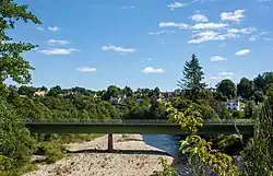 Craigellachie Bridge over the River Spey was built by Thomas Telford between 1812 and 1815.[1] A plaque on one of the castellated towers guarding the entrance to the bridge records that the metalwork was cast in Wales: another that the bridge was restored to this, something like its original condition, in 1964. The bridge is a remarkable piece of engineering, and can be viewed from above or below.