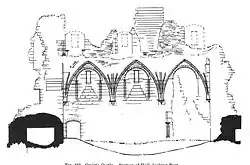 The present Gothic castellated ruins date mainly from the 15th century,[8] with some 12th or 13th century work. Another view is that the main part of the building was a hall house dating from the 12th or 13th century, incorporating an even earlier building[9] which may have been built by the predecessors of Walter Hose who held sway prior to Anglo-Norman control.[10]