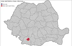 Craiova metropolitan area is a metropolitan area, founded on 11 February 2009, and formed by Craiova and other 23 other nearby communities. The population of this area is 356,544.[1]