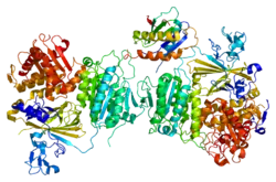 - ^ a b Bi, X; Mancias, JD; Goldberg, J (Nov 2007). "Insights into COPII coat nucleation from the structure of Sec23.Sar1 complexed with the active fragment of Sec31". Developmental Cell. 13 (5): 635–45. doi:10.1016/j.devcel.2007.10.006. PMC 2686382. PMID 17981133.