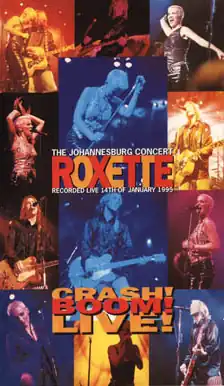 Crash! Boom! Live! is the fourth concert film by Swedish pop music duo Roxette, released on 19 September 1996 on VHS and LaserDisc formats by Picture Music International and EMI.[1] It contains a shortened version of the duo's 14 January 1995 concert in the Ellis Park Stadium in Johannesburg, South Africa of the Crash! Boom! Bang! Tour, which saw the band performing to over one million people during its eighty-plus concerts throughout South Africa, Europe, Australia, Asia and Latin America.[2] According to the video's liner notes, attendance for this show was in excess of 52,000 people.[3]