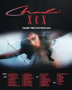 - ^ Charli XCX [@charli_xcx] (5 April 2022). "THRILLED TO ANNOUNCE THE 2ND LEG OF THE CRASH U.S TOUR 🩸 PRE SALE TOMORROW. GENERAL SALE FRIDAY 🩸" (Tweet). Retrieved 8 April 2022 – via Twitter.