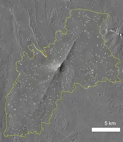 - ^ Kneissl, T.; Michael, G. G.; Platz, T.; Walter, S. H. G. (2015-04-01). "Age determination of linear surface features using the Buffered Crater Counting approach – Case studies of the Sirenum and Fortuna Fossae graben systems on Mars". Icarus. 250: 384–394. Bibcode:2015Icar..250..384K. doi:10.1016/j.icarus.2014.12.008. ISSN 0019-1035.