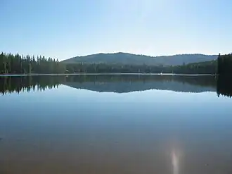 Crawfish Lake (48°28′55″N 119°12′57″W / 48.48194°N 119.21583°W) is a small lake located 15 miles (24 km) northeast of Omak, Washington. The lake has a surface area of 80 acres (32.37 ha) and is located at 4,475 ft (1,364 m) above sea level. The northeast portion of the lake borders the Okanogan–Wenatchee National Forest, and the south half is on the Colville Indian Reservation. Most of the property along the shoreline of the lake is privately owned, with a US Forest Service campground occupying the northeast side of the lake. Motors have been prohibited on the lake since 1996. The lake is used mainly for fishing, rowing, canoeing, kayaking and swimming. The lake once contained many crawfish but the state has recently poisoned it to contain the native water reed and thus kill the crawfish.