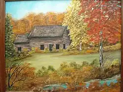 Oil painting of Thomas Ogle Stroud's cabin before it was moved in 2007.[4]