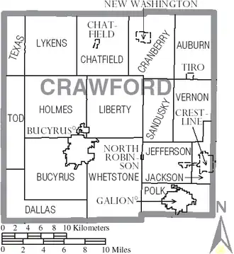 Map of Crawford County, Ohio with Municipal and Township Labels