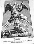 Creation of the World is a mosaic composition in the dome of the Chigi Chapel in Santa Maria del Popolo, Rome, designed by Raphael. The chapel itself was designed by Raphael for his friend and patron, banker Agostino Chigi as a private chapel and family burial place. The dome was decorated with mosaics, a somewhat unusual and old-fashioned technique in the 16th century. Raphael's cartoons were executed by a Venetian craftsman, Luigi da Pace in 1516. The original cartoons were lost but some preparatory drawings, that confirm the originality of the work, survived in the Ashmolean Museum, Oxford. There are two studies for the figure of God and one for the angel above Jupiter. Another drawing in the Palais des Beaux-Arts in Lille shows the planet Mars with an angel. This is probably a creative drawing by a pupil suggested by its inferior quality.[1] Luigi da Pace signed and dated the work at the corner of the panel of Venus:[2]