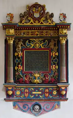 He founded two alms houses, one in the parish of St Mary Arches, Exeter, and another in Crediton, each for relief of two poor men and their wives, and two single persons.[20] His monument survives in St Mary Arches church in Exeter.