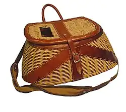 In modern times, the term has come to encompass various types of wicker baskets used by anglers or commercial fishermen to hold fish or other prey. The word is also associated with agriculture and some domestic baskets.[1]