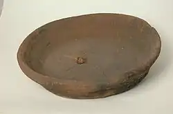 A crepulja is a shallow clay container with a little hole in the middle. The container diameter is between 25 - 60 cm, the height of the pan 7 – 13 cm, and the walls thickness 3 - 5 cm. The clay is treaded by stepping over the mud, mixed with raw horse dung, goat hairs, oat straw or chaff. The container is modelled by hand. The finished pan is burnished using wet hands or coated with rarified mud. This could also be done with watered dung. Drying happens in the open for several months, finally the container is fired by placing it over the fire with the inner surface towards the fire.[1]