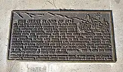 The flood was commemorated in Woody Guthrie's song "Los Angeles New Year's Flood".[8] To honor the victims of that New Year's calamity and to mark its 70th anniversary, a small monument was dedicated January 1, 2004, at Rosemont and Fairway avenues in Montrose, near where the American Legion Hall had stood.