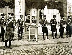 From the French paper L' Illustration, in an article by the military correspondent Jean Len: "There is something that occasionally draws the attention of the crowd. The passage of a Cretan Gendarmerie patrol, dressed in their national uniform: boots, vraka, shirt and toca hat on their heads. They are handsome men with dark hair, tall with a steady step...pride lights their faces. What a dream they live, these man who were for so long the captives of the Turks in their poor island, when they realize that they are entrusted to keep order in Thessalonica which they liberated from the Turks and which is still inhabited by so many of the previous conquerors, who now have to obey them! The presence of this Gendarmerie might calm the Bulgarian soldiers a little. Every evening they drink too much, creating problems wherever they pass."