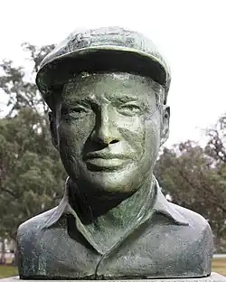 The Cricket Captains' Walk is a collection of specially commissioned bronze busts of Test captains of the Australian men’s national cricket team, arrayed on pedestals on the outside of a rectangular path set in a large public park in Cootamundra, New South Wales. The all-weather path, which starts and ends at Wallendoon Street is wheelchair friendly, and approximately 150 metres around.