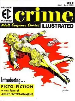 Crime Illustrated was a black-and-white magazine published by EC Comics in late 1955 and early 1956. Part of EC's Picto-Fiction line, each magazine featured three to five stories.[1] The format alternated panels of typography with panels of illustrations. Thus, it was arranged in tiers like a comic book but eliminated hand-lettering, balloons and panel borders.