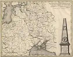 The Crimean journey of Catherine the Great (Russian: Путешествие Екатерины II в Крым), also known as Таврический вояж (Taurida Voyage) at the time, was a six-month (January 2, 1787 – July 11, 1787) inspection journey of Catherine II of Russia to the newly acquired lands of New Russia and Crimea, gained as a result of the victorious wars against the Ottoman Empire (1735–39 and 1768–74) and peace treaties with the Cossack Hetmanate followed by the forced liquidation of the free Zaporozhian Sich.