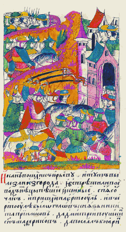 The crisis started in mid-1560s when the poor harvest of 1567 became the trigger of the crisis. The taxes had risen significantly in the previous decades as the state waged expensive wars against the Tatars in the east and against Poland and Sweden in the west. The population growth in the previous century led to overpopulation and peasants having insufficient food reserves. The famine ensued with the grain prices increasing 8-10 times and remaining high after another poor harvest next year. The famine continued in 1570 when a pestilence hit Russia too.[3] In spite of the efforts to contain outbreaks the epidemic spread in the Central and Northern Russia.[4] Many localities were depopulated and there were reports of cannibalism.[5] The more dense urban population especially suffered and some towns lost nearly all their inhabitants. Kolomna had only 12 tax-paying households in 1578 while in Murom most of the households and shops were deserted.[6]