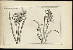 In addition to portraits, he produced engravings of Biblical and historical themes and book illustrations. He created 60 engravings for an influential work on dressage, Maneige royal by Antoine de Pluvinel (Paris, 1623), later published under the title L'Instruction du Roy en l'exercice de monter à cheval. Van de Passe's own Hortus Floridus, published in 1614—1616, was a collection of 160 engravings depicting flowering plants. The work was so popular that the original Latin edition was translated into Dutch, French and English.[2] His Les vrais pourtraits de quelques unes des plus grandes dames da la chrestiente (1640)[note 1] contained two verses dedicated to his sister, the engraver Magdalena van de Passe, who had died two years earlier.[4] In 1643—1644 Joan Blaeu published Van de Passe's Van 't Licht der teken en schilderkonst.,[note 2] a book teaching drawing techniques.[5]