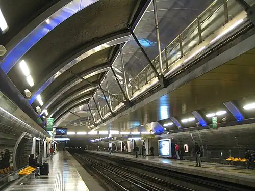 Cristóbal Colón is an underground metro station on the Line 4 of the Santiago Metro, in Santiago, Chile. This station is named for Cristóbal Colón Avenue, which in turn was named after Christopher Columbus. The station was opened on 30 November 2005 as part of the inaugural section of the line between Tobalaba and Grecia.[2]