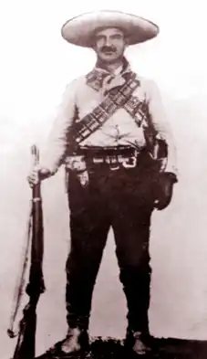 The Mexican Revolution started in 1910 against the dictatorship of Porfirio Díaz and for the masses' demand of land for the peasantry.[26][27][28][29] Francisco I. Madero was the first revolutionary leader.[23][29][28] He was elected president in November 1911 but was overthrown and executed in 1913 by conservative General Victoriano Huerta in a series of events now known as the Ten Tragic Days.[28][27] After Huerta seized power, Archbishop Leopoldo Ruiz y Flóres from Morelia published a letter condemning the coup and distancing the Church from Huerta. The newspaper of the National Catholic Party, representing the views of the bishops, severely attacked Huerta and so the new regime jailed the party's president and halted the publication of the newspaper. Nevertheless, some members of the party participated in Huerta's regime, such as Eduardo Tamariz.[30][31] The revolutionary generals Venustiano Carranza, Francisco Villa and Emiliano Zapata, who won against Huerta's Federal Army under the Plan of Guadalupe, had friends among Catholics and the local parish priests who aided them[32][33] but also blamed high-ranking Catholic clergy for supporting Huerta.[34][35][36][37][6][38]