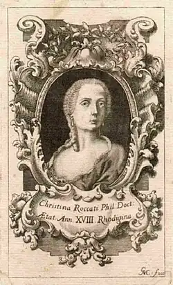 Cristina Roccati (24 October 1732 in Rovigo – 16 March 1797 in Rovigo) was an Italian physicist and poet who earned a degree at the University of Bologna (1751). This was the third academic qualification ever bestowed on a woman by an Italian university.[1][2]
