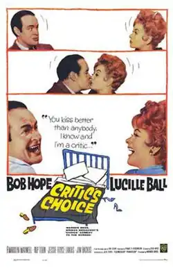 Critic's Choice is a 1963 American comedy film directed by Don Weis. Based on the 1960 Broadway play of the same name by Ira Levin, the movie stars Bob Hope and Lucille Ball and includes Rip Torn, Marilyn Maxwell, Jim Backus, Marie Windsor and Jerome Cowan in the cast.