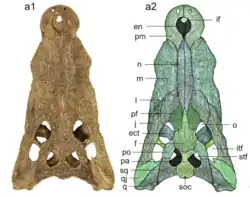 - ^ a b Brochu, C. A.; Storrs, G. W. (2012). "A giant crocodile from the Plio-Pleistocene of Kenya, the phylogenetic relationships of Neogene African crocodylines, and the antiquity of Crocodylus in Africa". Journal of Vertebrate Paleontology. 32 (3): 587. Bibcode:2012JVPal..32..587B. doi:10.1080/02724634.2012.652324. S2CID 85103427.