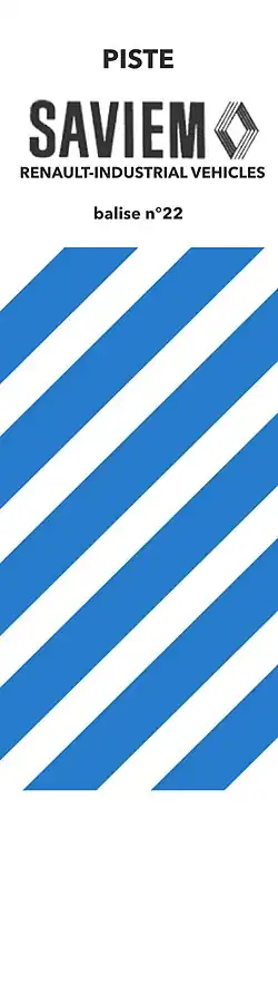 There were 25 Saviem markers installed in 1977 to mark the Saviem Track.[6] These beacons were used as indicators that the track ahead will be difficult. Today visitors can place a sticker on the blue and white panel.
