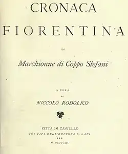 - ^ Niccolò Rodolico, ed., Cronaca fiorentina di Marchionne di Coppo Stefani (Citta di Castello, S. Lapi, 1903)