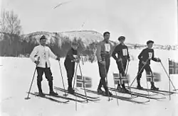 An early record of a public ski competition was for an 1843 event in Tromsø. The announcement called the event a "wagering race on skis".[4] A distinct alpine technique emerged around 1900 from how skiing was practiced up until then when Mathias Zdarsky advocated the "Lilienfelder Ski Method" as an alternative to the Norwegian technique.[3] In Norwegian, langrenn refers to "competitive skiing where the goal is to complete a specific distance in pre-set tracks in the shortest possible time". Alpine skiing competitions (known as hill races) existed in Norway during the 18th and 19th centuries, but were discontinued when the main ski festival in Oslo focused on long races (competitive cross-country skiing) and ski jumping (now known as the Nordic disciplines). The alpine disciplines reemerged in Central Europe around 1920. Ski touring competitions (Norwegian: turrenn) are long-distance cross-country competitions open to the public, competition is usually within age categories.[5]