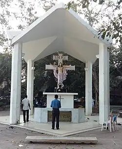 The cross used to stand where the current Elphinstone School currently stands. Currently it stands at the northern end of the ground. The cross is attested to have miraculous powers and devotees come from all over Mumbai and Goa during the feast on 3 May. The cross is adulated by both Christians and non-Christians. Good Friday and Maundy Thursday services are held in an exclusive area around the cross. The cross is maintained by the local diocese.