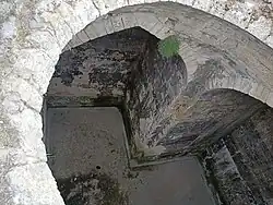 In the plan of the structure, the side is a cross with an intra-wall tube 4.7 m long. The internal length of the three sides of the cross is 4.2 m (excluding the central part of the base), and the fourth, western side has a length of 5.6 m. The central part of the structure is covered by a dome with a diameter of 5 m, apparently rebuilt in the late medieval period, the height from the floor to the top of the dome is about 10 m. The square space in the central part of the cross, covered by the dome, has a side equivalent to 5 m (i.e. 1 m more than the width of the end sides of the cross), and, as it were, the internal structure of the wall is cut 0.5 m from each side, which gives its central part a complicated structure. The total length of the monument from west to east is 15 m, from north to south 13 m. An examination of this supposed cistern reveals that it was not previously cut out of the rock, as it was believed, it was formed from large well-hewn blocks for lime mortar. When examining the object, fragments of light plaster coating are found on the surface.[4]
