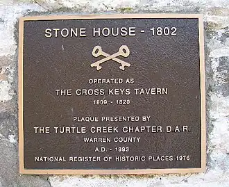 The Crossed Keys Tavern, also known as the Cross Keys Tavern is a historic stone building located in Turtlecreek Township near Lebanon, Ohio. It is across the Little Miami River from the former Fort Ancient village. Built in 1802, it was operated as a tavern from 1809–1820.[2]