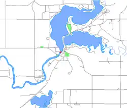 Croton Dam (or Croton Hydroelectric Plant) is an earth-filled embankment dam and powerplant complex on the Muskegon River in Croton Township, Newaygo County, Michigan. It was built in 1907 under the direction of William D. Fargo by the Grand Rapids - Muskegon Power Company, a predecessor of Consumers Energy.[3][4] The 40-foot-high (12 m) dam impounds 7.2 billion U.S. gallons (6 billion imp. gal/27 billion L) of water in its 1,209-acre (489 ha) reservoir and is capable of producing 8,850 kilowatts at peak outflow.[5][6] It was listed on the National Register of Historic Places in 1979.[3]