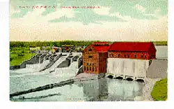 The Croton Dam and hydro plant were completed in 1907, and a grand opening was held on September 7, 1907 in the village (named after Croton-on-Hudson, New York).[12] Contemporary accounts report that "Grand Rapids Mayor George Ellis and a large contingent of city and business officials journeyed north to the village of Croton on a special train. After touring the big dam, they adjourned to a nearby field for a fine dinner, followed by cigars and a friendly baseball game."[4]