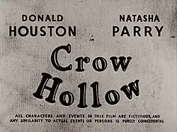 Crow Hollow is a 1952 British second feature ('B')[1] mystery film directed by Michael McCarthy and starring Donald Houston, Natasha Parry and Patricia Owens.[2][3] It was written by Vivian Milroy based on the 1950 novel Crow Hollow by Dorothy Eden. Newlywed Ann Amour survives a number of murder attempts, while her maid is found stabbed to death by unknown assailants.